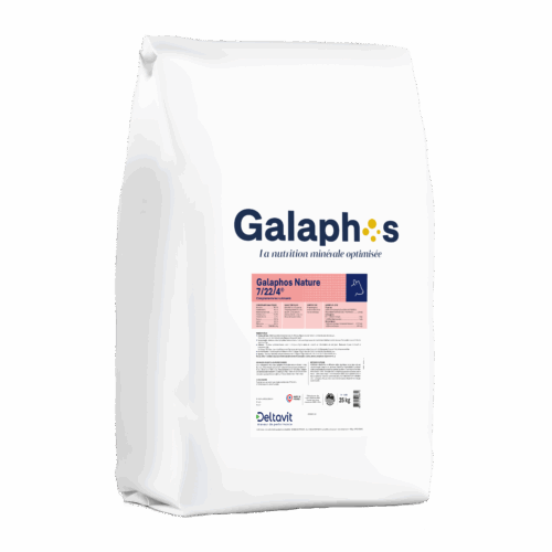 Galaphos® Nature Pattes est enrichi en biotine et zinc (dont une partie est apportée sous forme chélatée), qui participe à la consolidation des sabots. Il contient des polyphénols qui contribuent à lutter contre le stress oxydatif et permettent une substitution d’une partie de la vitamine E. Il apporte 160 ppm de polyphénols, d’une valeur TEAC équivalente à 1 170 UI/kg de Vit E (méthode Trolox). Au total, Galaphos® Nature Pattes a une valeur équivalente de Vitamine E de 2 170 UI/kg. L’immunité des animaux est améliorée.